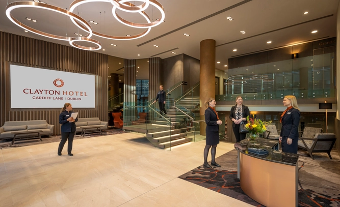 Clayton Hotel Cardiff Lane erbjuder 304 välutrustade rum samt moderna mötes- och eventfaciliteter, centralt beläget i Dublins Docklands-område. Hotellet ligger i stadens hjärta, bara några steg från Bord Gáis Energy Theatre och Docklands, och erbjuder enkel tillgång till Dublins livliga kulturliv, restaurangutbud och transportnät – inklusive den närliggande tågstationen Pearse DART.